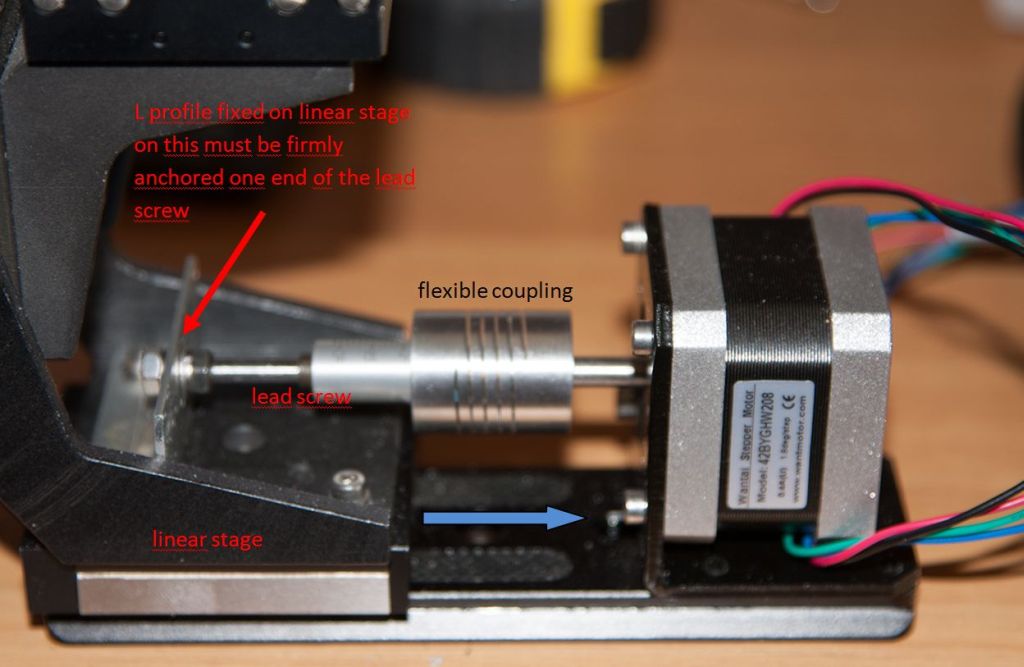 Una domanda: l'asse del motore e quello della vite sono solidali tra loro oppure l'asse della vite può scorrere all'interno del giunto? La vite micrometrica si muove in avanti man mano che si avvita, giusto?