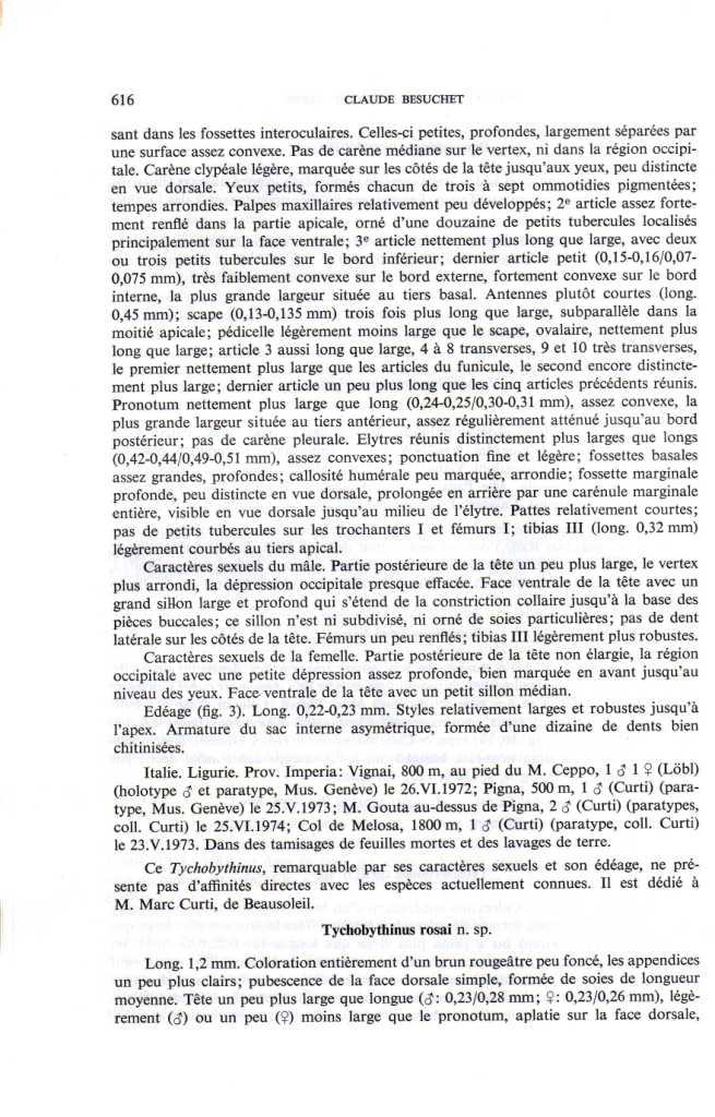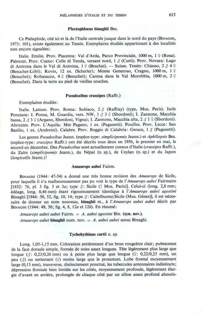 Besuchet C., 1980: Contribution a l'étude des Coléopteres Psélaphides d'Italie et du Tessin