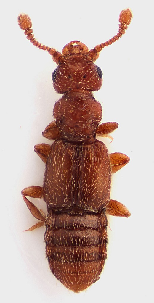 Già è stata un'impresa metterlo con l'addome in linea e con le antenne divaricate in avanti. Praticamente impossibile sistemare le zampe. Mai trovato uno Pselaphino più testardo e difficile da preparare, tanto che alla fine ho rinunciato (al primo tentativo ci ero riuscito, ma mi si è praticamente coperto di colla, che ho dovuto sciogliere di nuovo, e cercando di riprepararlo ha contratto le zampe più di prima). Quindi figurati se mi avventuravo nell'estrazione! A proposito. Io ho grossi problemi nell'incollare queste bestiole così minute. Se uso una quantità di colla adeguata, ovvero pochissima, prima di poggiare l'insetto sul cartellino è praticamente già seccata, e tiene poco o niente. Se ne metto abbastanza da riuscire ad incollare l'insetto, nel migliore dei casi forma una goccia troppo larga e spessa, e incollando l'insetto mi ingloba base dei femori, estremità delle tibie e tarsi, oppure bagna il corpo dell'insetto, risalendo per capillarità tra i peli e formando un sottile velo su testa, protorace, elitre ed addome (che guardando l'insetto con un paio d'occhiali o una buona lente non si vede, ma in foto ha un bruttissimo effetto).