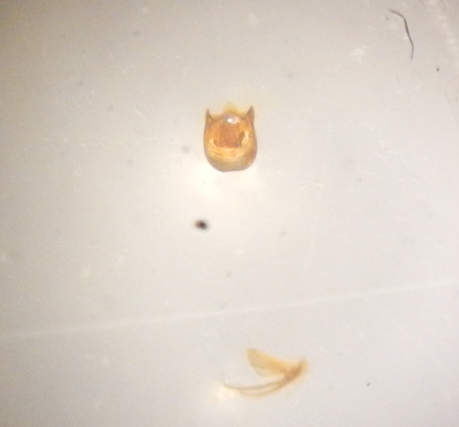 Questo non ricordavo di averlo preso. Era insieme ad alcuni Pselafini raccolti tra i detriti del fragmiteto circostante una zona umida. Somiglia all'Euconnus (Euconnus) hirticollis ma è diverso per la forma delle antenne e dell'edeago che ha due sporgenze appuntite ai lati.