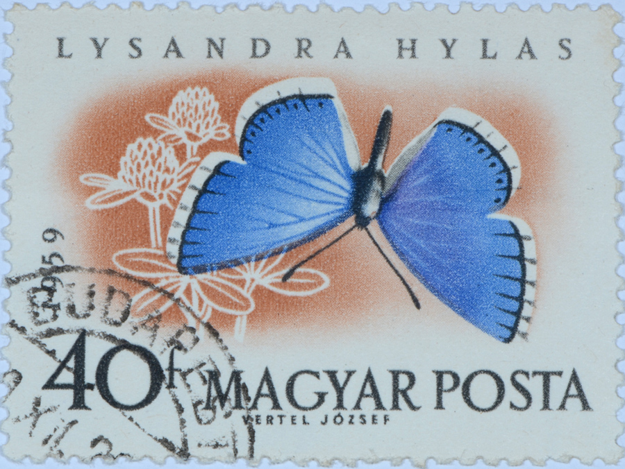 Ancora un francobollo ungherese della serie del 1959: raffigura un'Arctia festiva (Hufnagel, 1766), anche se è chiamata Arctia hebe, nome in sinonimia con A. festiva.