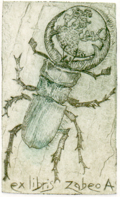 Nomas ha scritto: Da tempo colleziono ex libris eseguiti da validi artisti incisori, anche a soggetto entomologico. In particolare sto raccogliendo l’iconografia concernente il cervo volante negli ex libris, con l’intenzione di scrivere un articolo al proposito in collaborazione con l’amica Eva Sprecher-Uebersax del Museo di Basilea. Negli ex libris il cervo volante è talvolta rappresentato come simbolo del bene o del male. In diversi ex libris il lucanide è illustrato nella posa di reggere il mondo tra le mandibole, forse per rappresentare la sua forza ma non sono convinto di questa interpretazione. C’è qualcuno che può illuminarmi in merito a questa simbologia?