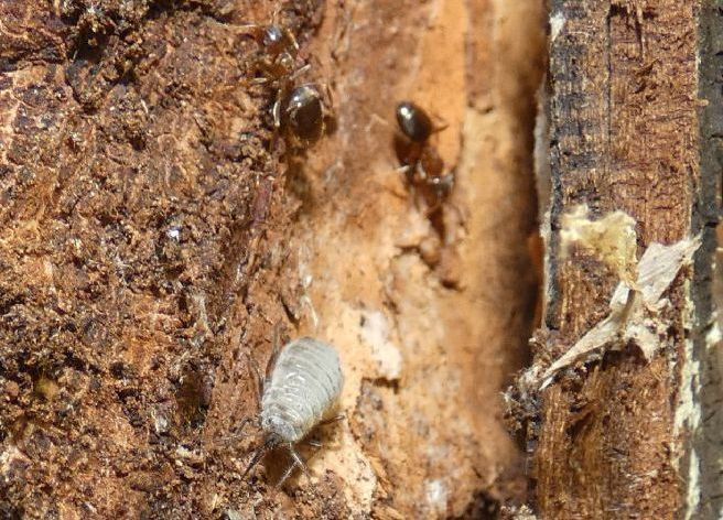 Sotto la corteccia di un acero, attorniati da formiche identificate come Lasius emarginatus,
