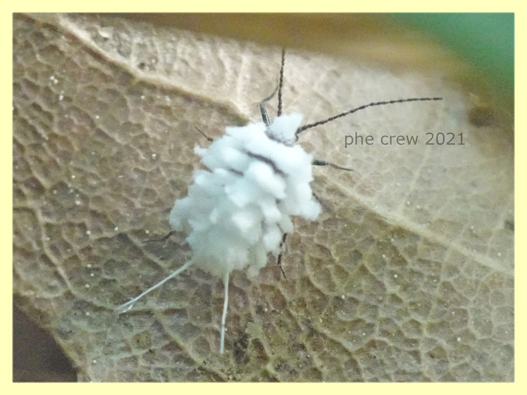 ...trovato immobile in cima ad un filo d'erba, poi fotografato su di una foglia secca...misura 3-4 mm. Sono arrivato a maschio attero di Margarodidae. Si può andare oltre ? |