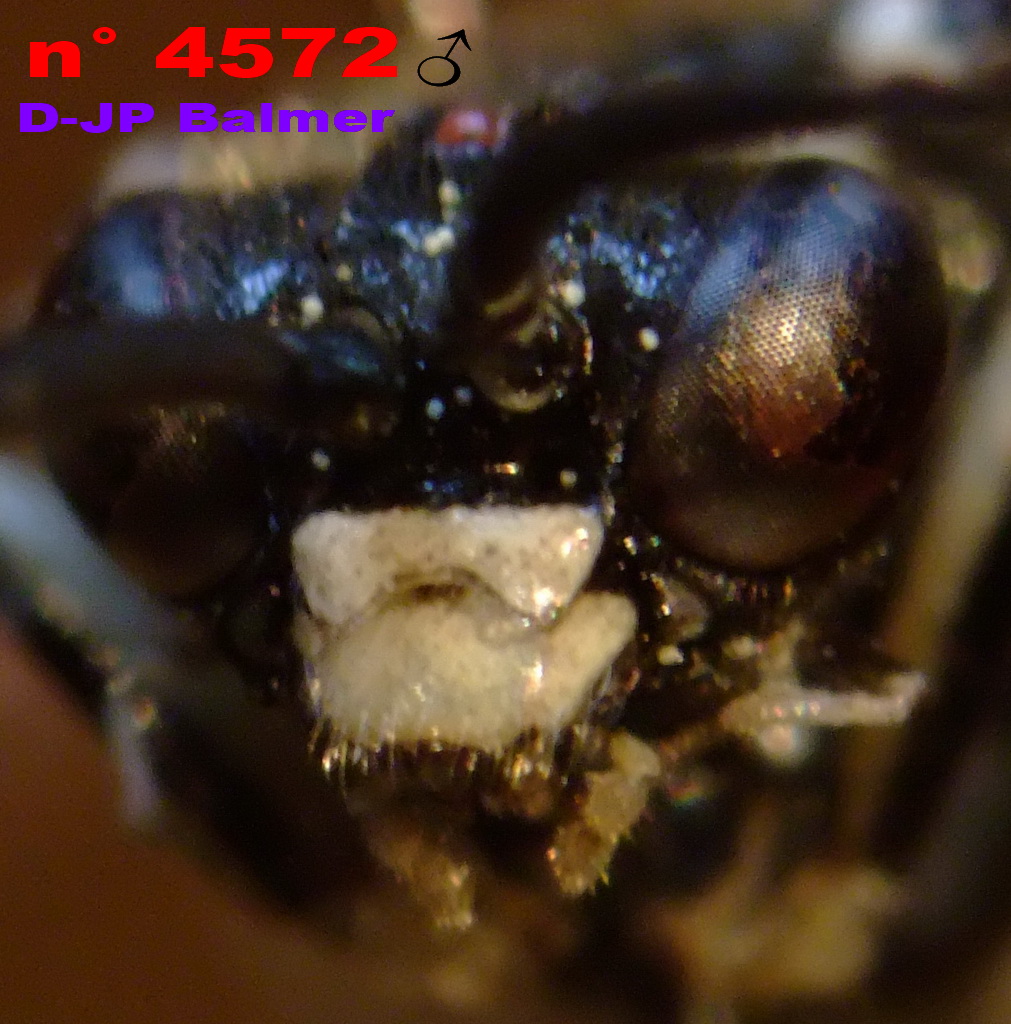 - ♂ & ♀ have trochanter 3 white, seldom with one weak black spot on the lower face. - The ♂ has the labrum entirely white, seldom slightly stained of black (See photo below). M. albicincta - ♂ & ♀ have the trochanter 3 largely stained of black to the lower face. - The ♂ has the labrum more or less stained of black, never entirely white. Thus : Macrophya (M.) alboannulata A. Costa 1859 ♂ Che vive anche in Italia. ..... OK ? Saluti. D & JP Balmer