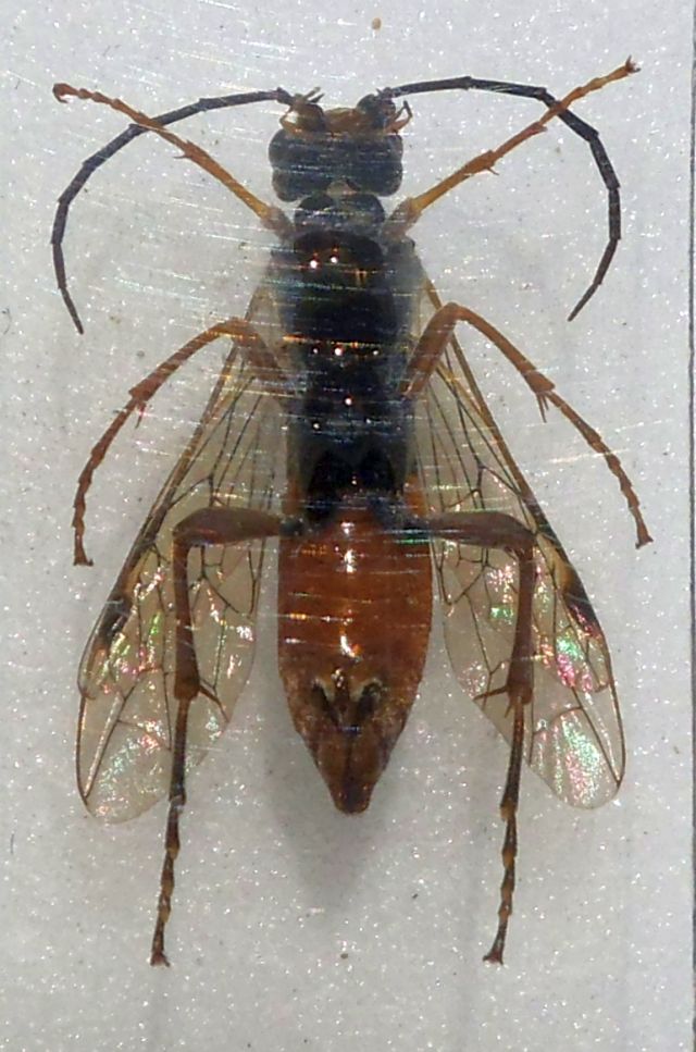 Clipeo bianco (come il labbro), appena arcuato; mesopleure con fini punti, lucide; ipopigio ad apice incavato, coi lati pallidi e centro bruno scuro. Mi sembra grande per una carbonaria a cui somiglia.