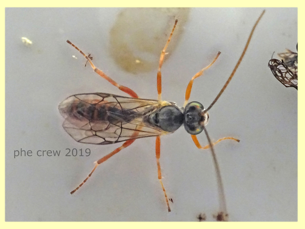 ...apparte la Pristiphora che potrebbe non esserlo, la venulazione alare del parassitoide mi porta ad Ichneumonidae Campopleginae o Cryptinae .... ...gli articoli antennali sembrano essere 28.