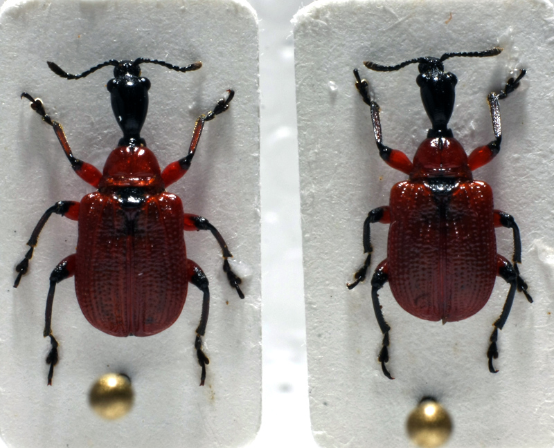 Sì Omar, entrambi Apoderus coryli, forse maschi dalla forma del capo. Se vuoi verificarlo con certezza, la femmina ha due spine nella parte terminale delle tibie, il maschio una sola. Grazie per i dati di raccolta. Il nocciolo, come dicevo negli interventi precedenti, è la pianta ospite principale. Meno spiegabile la presenza su rami di quercia, ma forse era casuale. Hai notato barilotti?