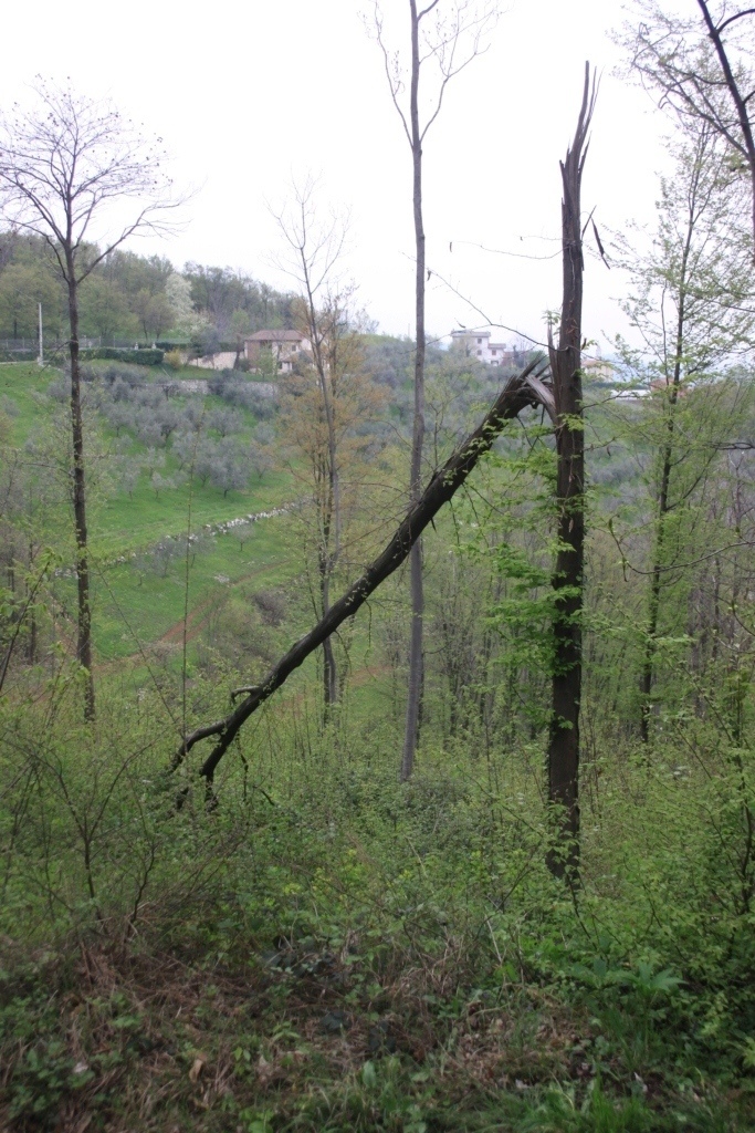 Sabato scorso, 17 aprile, ero ancora in giro per i Berici, ad osservare l'attività di Deporaus. Qua e là esemplari intenti a nutrirsi e a costruire sigari. Ad un certo punto arrivo davanti ad un carpino letteralmente gremito di insetti, ogni foglia, o quasi, con uno o due individui. Dopo aver fatto un po' di foto, faccio qualche passo indietro ed osservo l'albero in questione: L'albero è spezzato ad una certa altezza e probabilmente destinato a non sopravvivere a lungo. Questo fatto mi induce ad una considerazione che, sebbene certamente non originale, mi sembra di qualche interesse. Perchè questi coleotteri tra tante piante presenti scelgono di utilizzare proprio un albero morente?