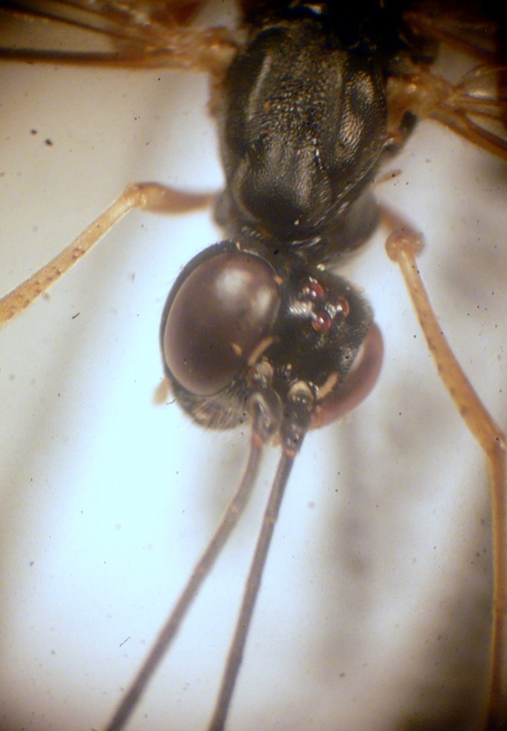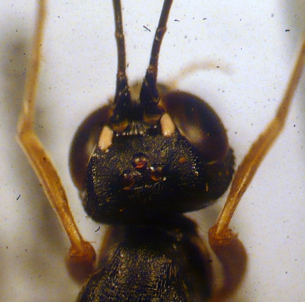 Marco dovresti vedere allo stereoscopio se la testa dietro gli occhi nella parte superiore presenta una scultura, una serie di rughe diciamo, e se le mandibole hanno 1 o 2 denti (credo 1). Se mi vedi questi 2 caratteri ti dico la specie.