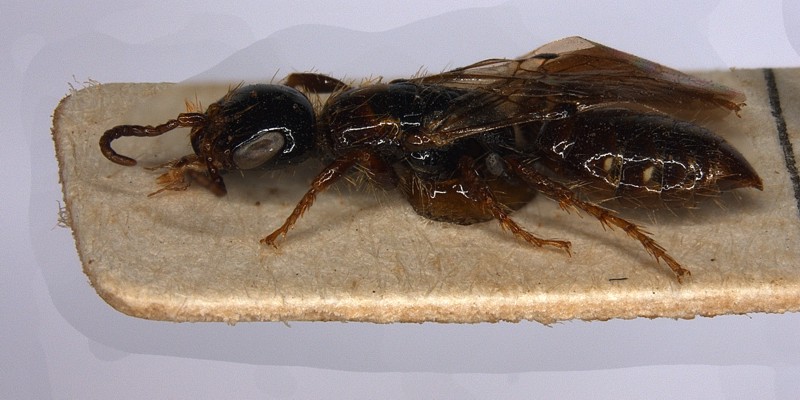 Questo carattere, unito a quello della nervulazione delle ali anteriori assai ridotta, mi fanno convincere che si tratti invece di un Bethylidae (Hymenoptera, Chrysidoidea).