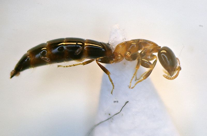 Guardando alcuni tronchetti di castagno ho notato, tra una miriade di "moscerini", questo piccolo imenottero. Solo dalla foto ho poi notato che è ricoperto di acari...