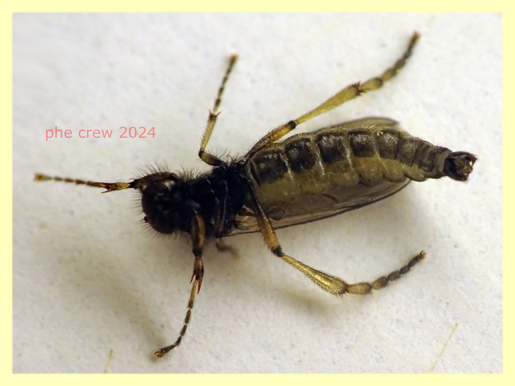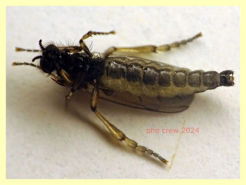 ...si e' inscurito,... per il periodo (anche se credo che sia sfarfallato prima), la lunghezza di 7 mm., la costante larghezza del funicolo tranne l' ultimo articolo, la forma del femore e del primo tarso della terza zampa....accendo Bibio femoralis....ma potrei sbagliare benissimo.