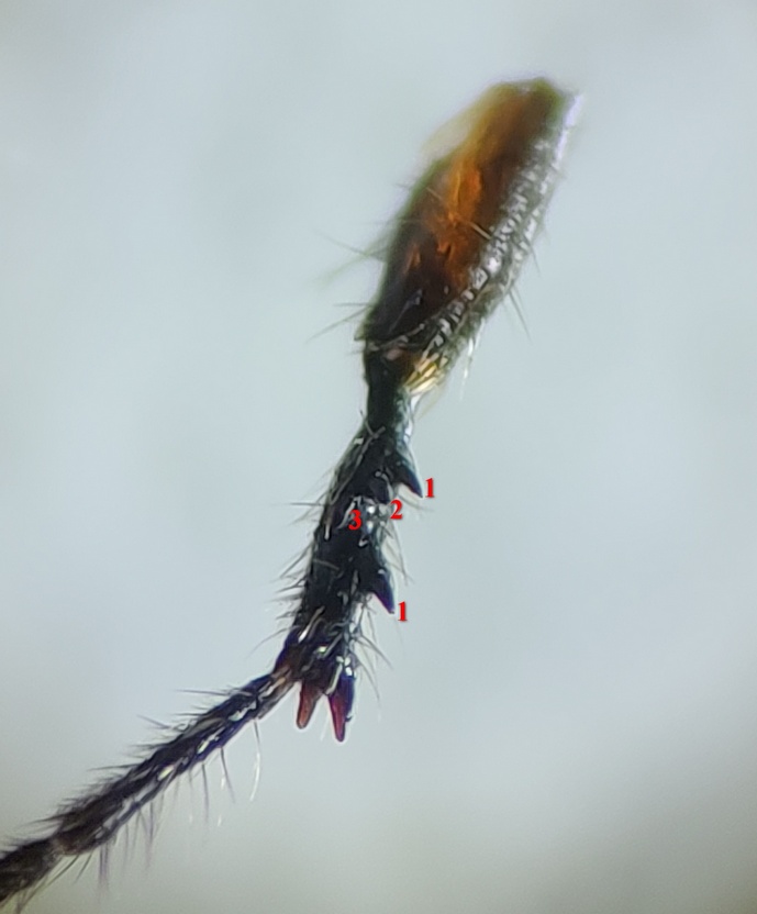 As told before, I simply followed Seguy's keys, which are quite old and refer to the french fauna. Reading Seguy's description of Dilophus tenuis, the only character not fitting is the color of the fore femur, which should be darker and I don't see the dimension, but it remains the best match unless there is a second spine, not shown in photo, in the middle of the fore tibia, in wihich case it is Dilophus bispinosus whose description fits a little better.