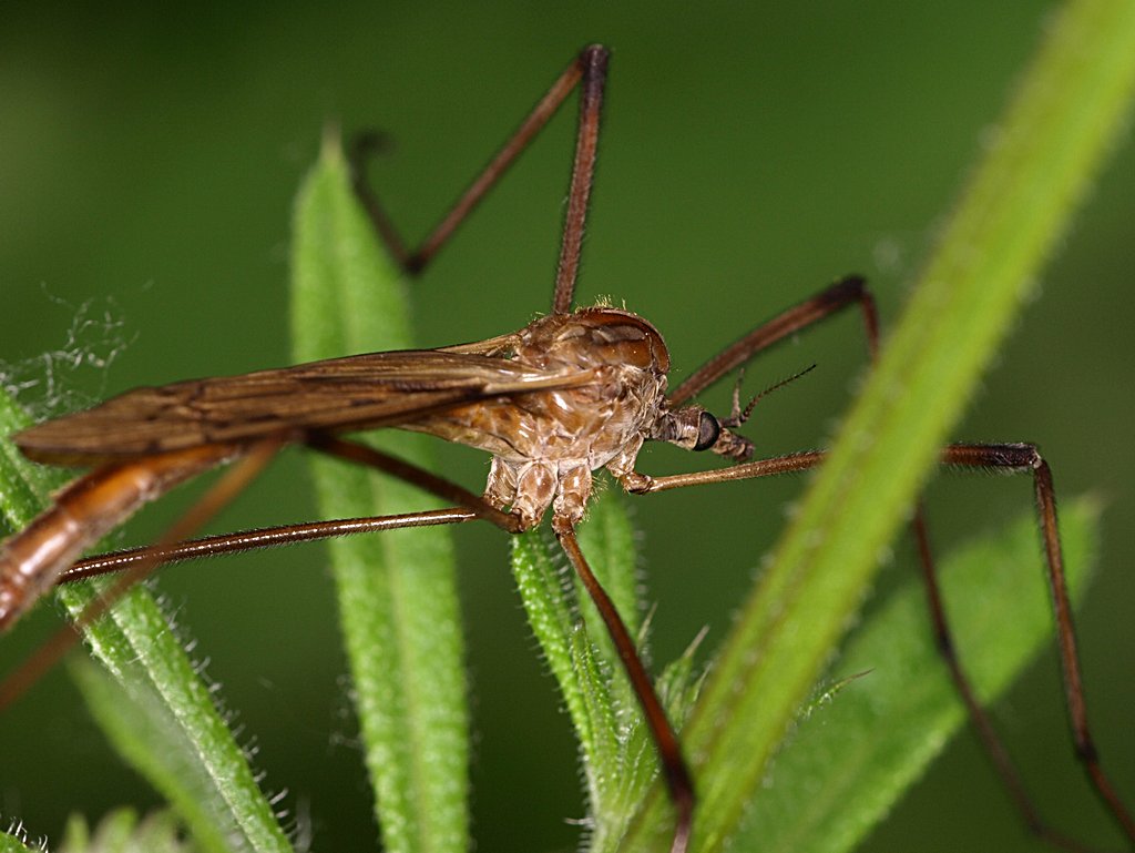 Questo Tipulidae era veramente gigantesco, probabilmente il più grande che abbia mai visto. Solo il corpo sarà stato, ad occhio, sui 30 mm, se non di più. Per darvi un'idea, le foglie subito sotto sono di ortica (l'insetto è posato su un Galium sp.)