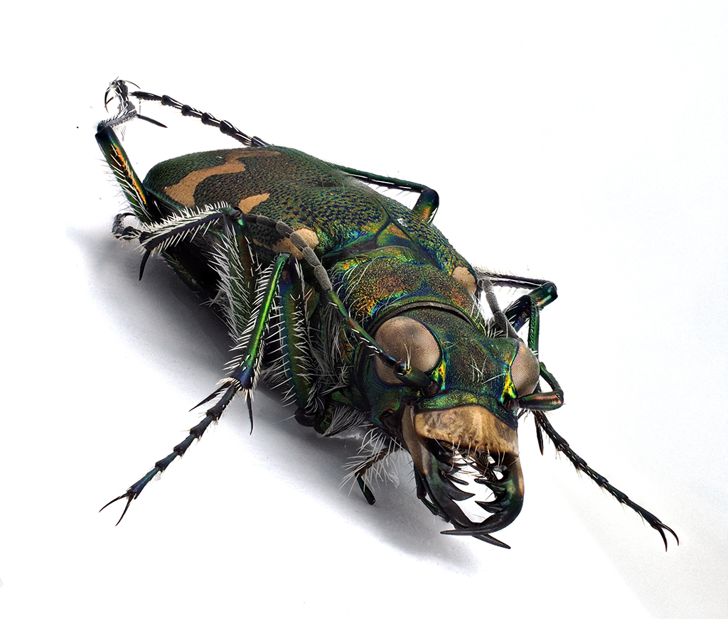 vista così sembrerebbe una Cicindela hybrida, ma dato che hai anche il maschio, un'estrazione per conferma non guasterebbe ;)
