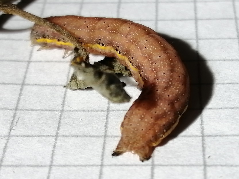 Rilancio... nessuna idea su questa falena? Nel frattempo, si è interrata nel mio barattolo e immagino che ormai sfarfallerà a primavera. A quel punto, metterò la foto dell'adulto!