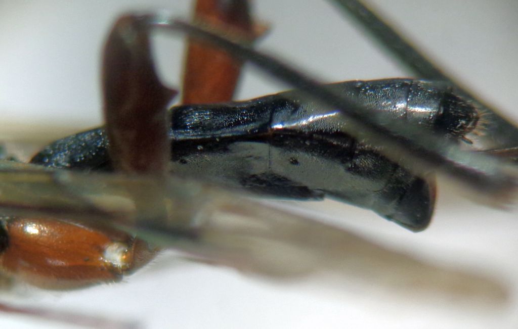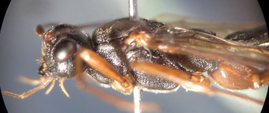 Non ho verificato la la venulazione ma a naso mi pare un Braconidae, spero comunque ben caratteristico. 38 flagellomeri. Fronte con ampio solco percorso da una alta carena nella parte mediobasale. Scuto lucido finemente punteggiato, alla base, sopra lo scutello, con due fossette oblique separate da una carena. Grazie per ogni info.