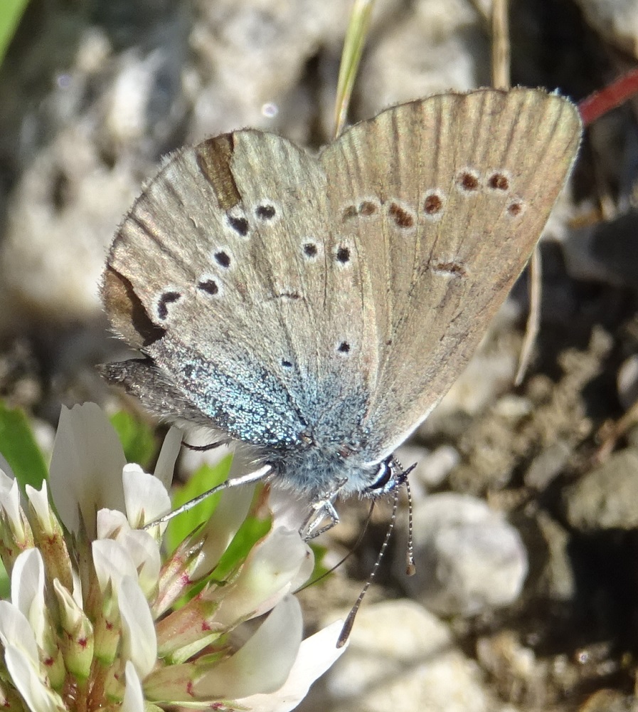 Salve, esemplare molto piccolo come si vede dal fiore; apertura alare forse di 20mm? Ho pensato anche a Cupido minimus... non ho foto della parte superiore. Che ne dite? Grazie!