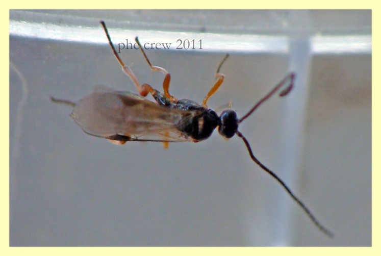 Imenottero parassita da larva di Phragmatobia fuliginosa
