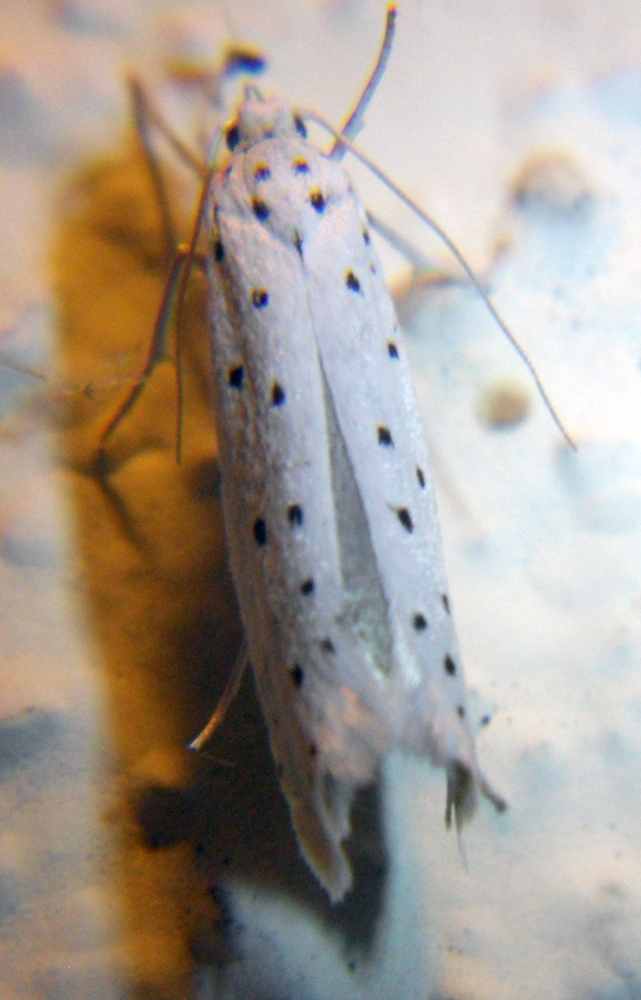 Questa piccola Yponomeuta è stata attirata dal lampioncino in veranda. Ho provato a districarmi tra le varie specie presenti in Italia, ma mi sono arreso dopo poco, sembrano tutte uguali :dead: