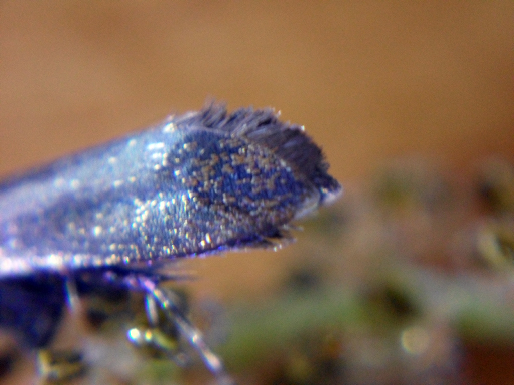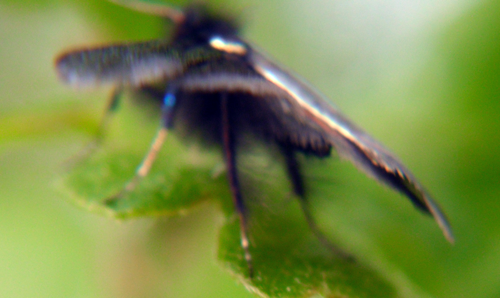 Questa è stata una bellissima sorpresa Mentre camminavo lungo la Strada della Capretta ho notato una Roverella in fiore attorno alla quale ronzavano un sacco di animaletti e sperando ci fosse qualche bel Vespide mi sono fiondato ad esaminarla. Nessun Vespide, però c'erano decine e decine di queste magnifiche falene metallizzate. Non avevo un contenitore adatto quindi ne ho prese 8 che ho messo in una provetta, purtroppo questo ha causato la perdita di quasi tutte le squame alari rendendole completamente nere Conto di tornare a prenderne altre appena c'è un pomeriggio soleggiato Ho anche provato a prepararne una con risultati a dir poco disastrosi: ala sinistra anteriore strappata e antenna sinistra spezzata...