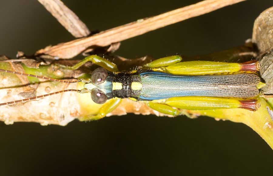 Un coloratissimo ortottero dalla foresta di tambopata, madre de dios, peru