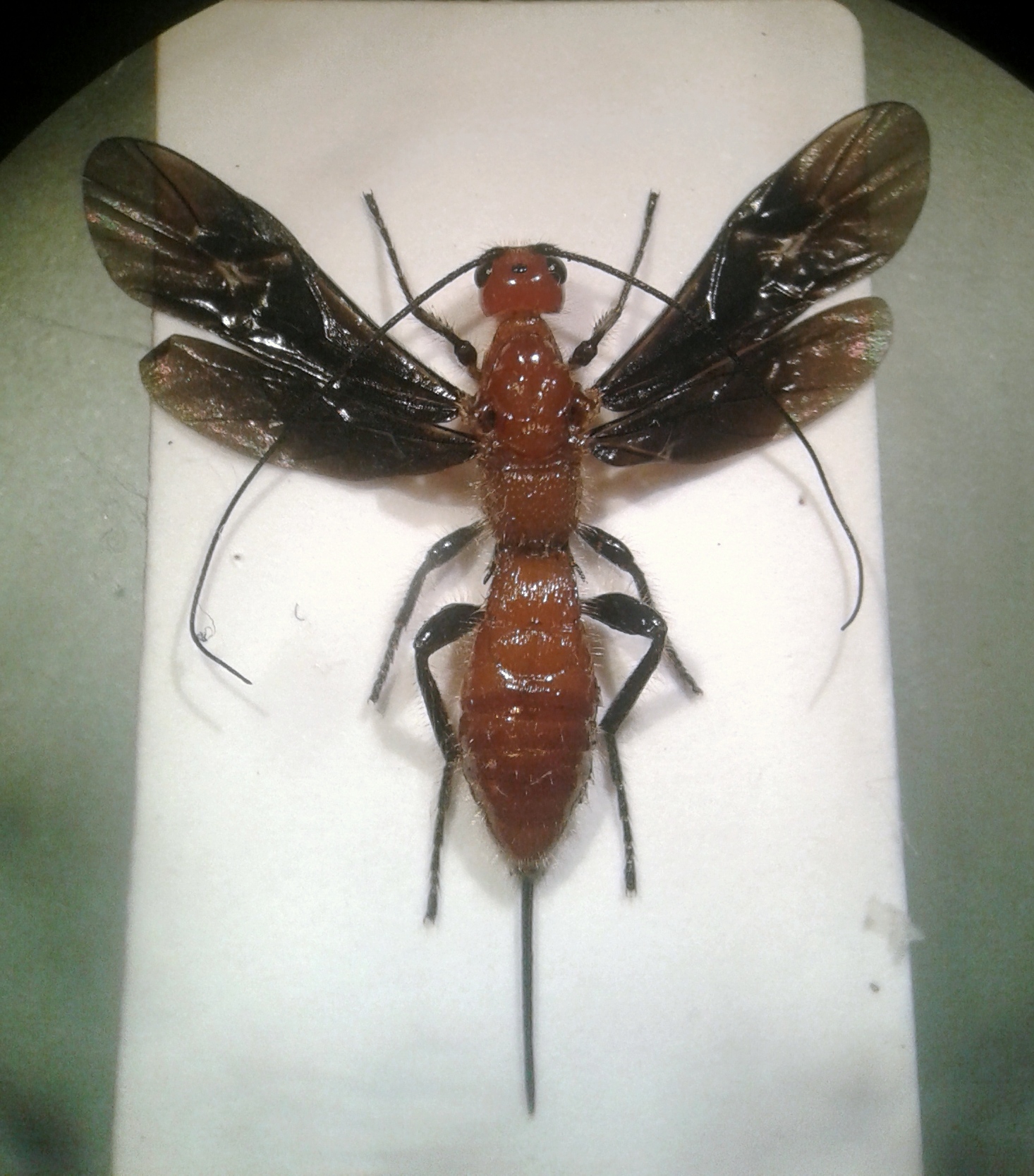Questo grosso parassitoide era appoggiato ad un tronco di quercia, su una grossa catasta.