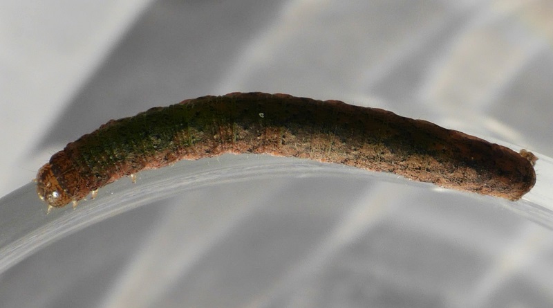 Su una Schefflera con foglie smangiucchiate, oggi ho trovato due bruchi. Il primo, ritengo fosse il solito Chrysodeixis chalcites.