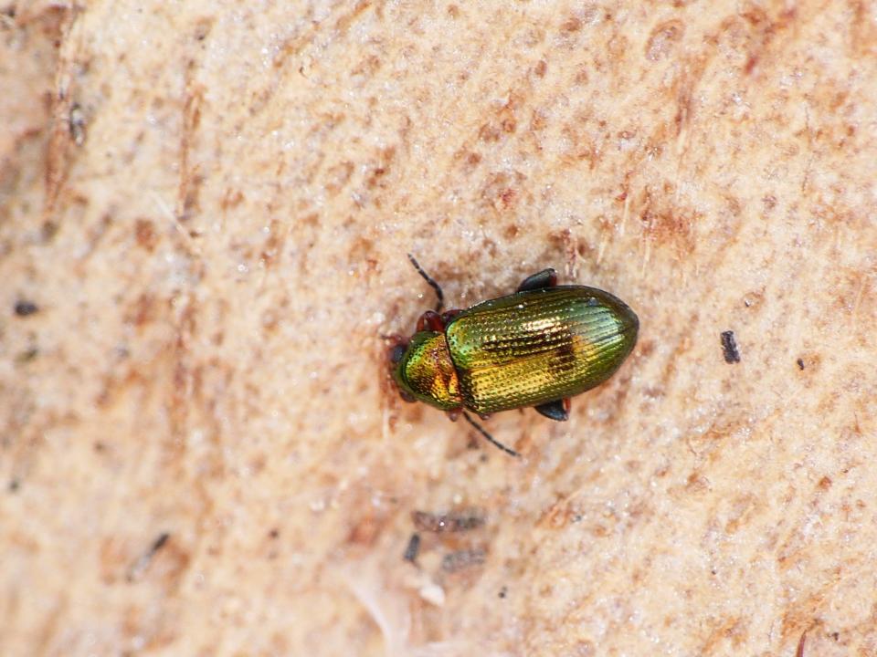 Sotto una corteccia di eucalipto. Alcuni erano tutti verdi e altri avevano il pronoto ramato.