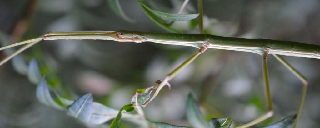 Osservo questi insetti stecco esclusivamente su lentisco nel bosco indicato. Tutto lascia pensare a Clonopsis gallica (l'adulto ha una banda ai lati dell'addome di colore bianco) e gli antennometri non mi pare superino il numero di 15.