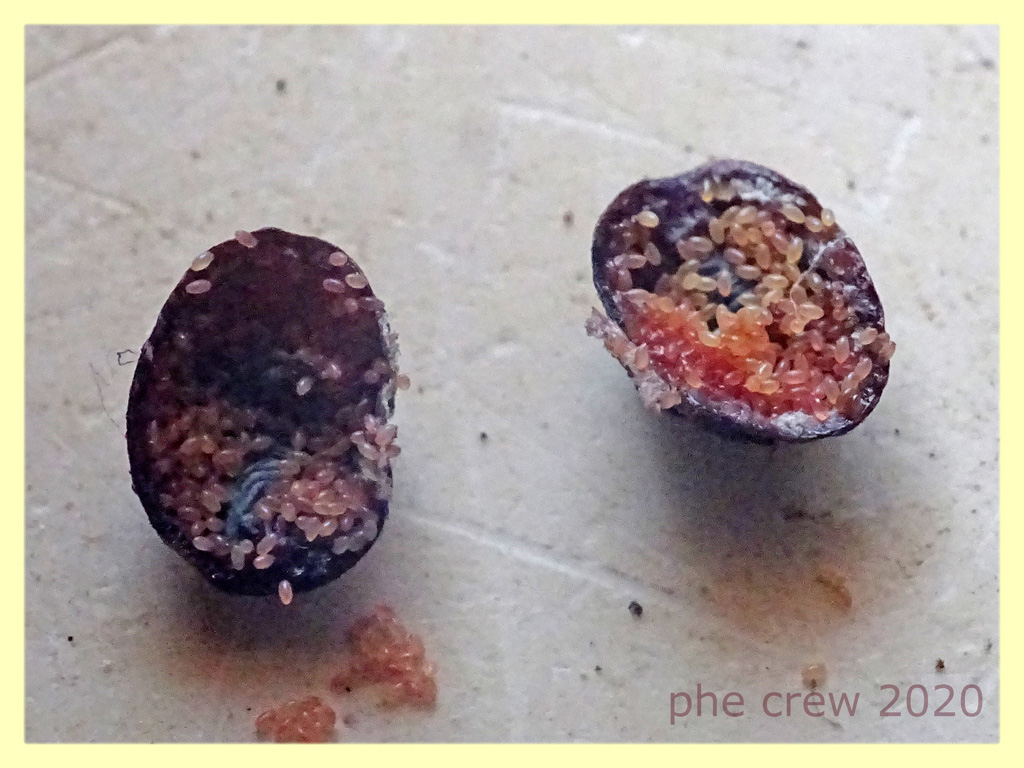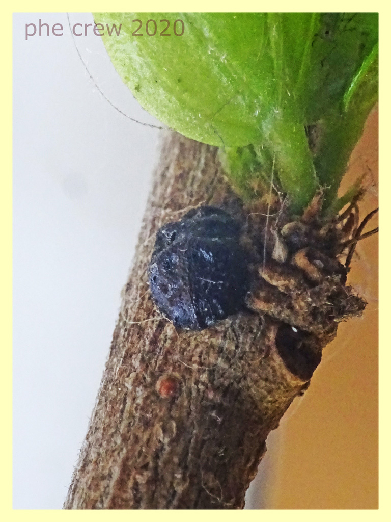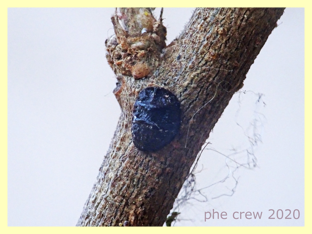 .... nonostante tutto le abbia trovate attaccate su dei rami di circa 30 mm. di diametro di Althea officinalis, penso che sia il parassita dell' Olivo cioè Saissetia oleae. La misura è di 4 mm. Non c'erano giovani ma solo questi a grano di Pepe ed io convinto che staccandoli avrei trovato delle zampine ed un apparato succhiatore....invece sembrano solo uova !! |
