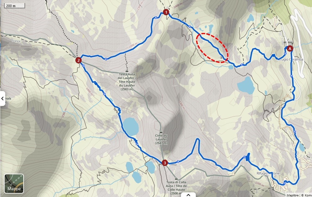 Ne ho catturate alcune nella zona indicata sulla mappa (Partenza dal Monastero di Sant'Anna di Vinadio)