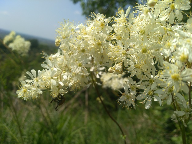 Come accennavo, alcune aree di questi colli sono caratterizzati dalla presenza di rocce basaltiche che prendono il posto di quelle calcaree, a testimonianza del passato vulcanico della zona. Imboccando un antico sentiero lastricato a basalto – risalente, se non erro, al Settecento, e usato dai mercanti della zona -, in cui si riconoscono ancora i solchi lasciati dai carri, l’ambiente inizia a cambiare con una certa rapidità. La roverella assume un ruolo dominante, il terreno si fa più secco ed erboso, e iniziano a spuntare certi fiori bianchi e generosi, su cui si abboffano di nettare diverse creature. Finalmente ci immettiamo in una piccola e splendida radura: i fiori bianchi (a proposito, qualcuno sa il loro nome per caso?) brulicano di Anthaxia, ed iniziamo a raccogliere Crisomelidi, edemere e altre cosette, finché – la stavamo cercando da un po’! – eccola lì, con il muso tuffato tra i petali: Hoplia argentea! :hp: Sarà anche la più comune delle nostre Hoplia, ma questo Scarabeide resta indubbiamente un animale di grande bellezza. Peraltro ne trovai solo un altro esemplare qualche anno fa, e da quella volta era un mio desiderio rivederla. Ne troviamo un’altra ancora, un po’ ciancicata, e, visibilmente contenti, proseguiamo verso la meta finale del giro.