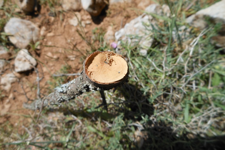 Ciao a tutti, questo è un breve resoconto del viaggio a Creta. In generale posso dire che abbiamo trovato pochi adulti in giro, pochi cerambicidi e pochissimi insetti; forse la cosa dipende anche in parte dall'andamento stagionale di quest'anno, ma credo che si tratti comunque di una caratteristica di questa isola, considerando anche la scarsità di specie come i phytoeciini e i lepturini, che in genere rappresentano una grossa fetta delle raccolte di adulti nei paesi mediterranei. A ciò si aggiunga la assenza di cataste da ispezionare. Quindi abbiamo dovuto concentrarci sopratutto nella raccolta di legna infestata da larve di xilofagi. Ma andiamo con ordine! 21 V: prima tappa Omalos, altipiano a circa 1000 metri di altitudine a nord delle Gole di Samarìa: La vegetazione è costituita da piante di acero e quercia spinosa, inoltre sono abbondanti cespugli di berberis cretica, fiorita proprio in questi giorni: Ombrellando le berberis raccogliamo in serie il bellissimo anaglyptus praecellens, mentre negli aceri l'obiettivo è il purpuricenus schurmanni. I rami anellati giacciono a terra e sono facilmente riconoscibili: Ed ecco un adulto immaturo nella sua celletta: Nella piana di Omalos scorgiamo molti asfodeli, ma purtroppo le agapanthia endemiche dell'isola sono assenti ingiustificate  : Primo piano di un ramo a terra di acer creticus anellato dal purpuricenus. In questo caso la caccia è stata molto divertente e semplice da attuare, è stato sufficente aggirarsi intorno agli aceri e cercare a vista i rami anellati a terra. Le larve mature infatti sono solite anellare il ramo e rimanere nella parte apicale, che si stacca e cade. A quel punto è sufficiente tagliare i rametti circa 20 cm. sopra l'anellatura per accaparrarsi l'insetto... Un avvoltoio degli agnelli ci osserva... ma non siamo ancora pane per i suoi denti!!! Verso sera ne scorgiamo molti volteggiare sulle cime dei Lefka Ori... Un altro obiettivo della spedizione è il raro pogonocherus creticus, segnalato della località costiera di Stomio, poco a nord della spiaggia di Elafonisi: Purtroppo i pini godono tutti di ottima salute e non rinveniamo attacchi larvali sui rami morti, in realtà trovo poco materiale da ispezionare perchè il caldo è torrido e la poca legna morta è molto secca e decorticata...fortunatamente ci rifacciamo trovando un grosso carrubo deperente nei cui grossi rami morti è facile avvistare molti attacchi larvali: