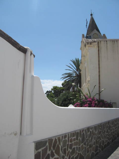 Arrivo in paese. Le ultime scalinate mi conducono alla Chiesa di San Pietro, Patrono della piccola frazione e di Panarea insieme a San Bartolo, Patrono delle Eolie.