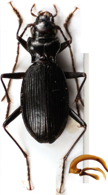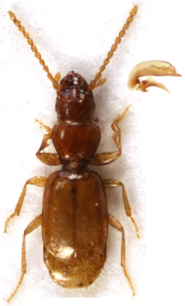 Da notare lo stranissimo edeago (anche se un po' tutte le specie di Trechus del gruppo strigipennis hanno forme strane).