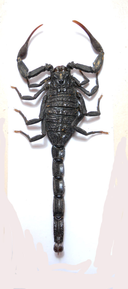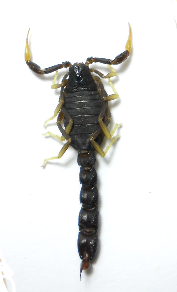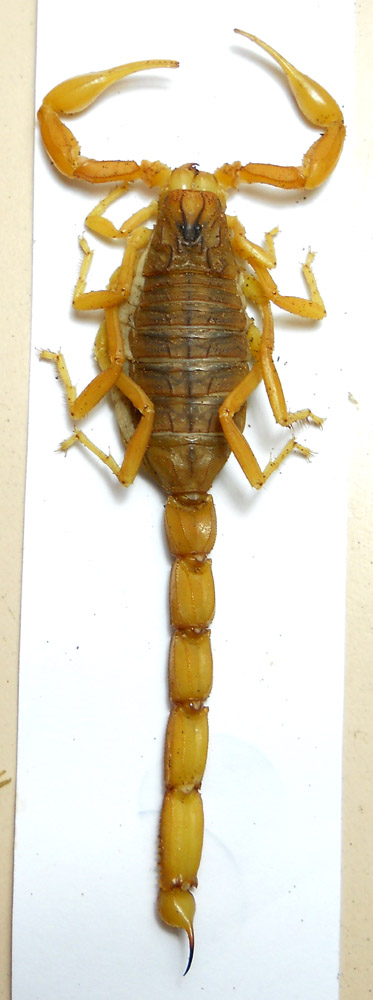I Buthidae di questo tipo e colore erano i soli abbastanza frequenti; lunghezza 8,5 cm (corpo + telson).