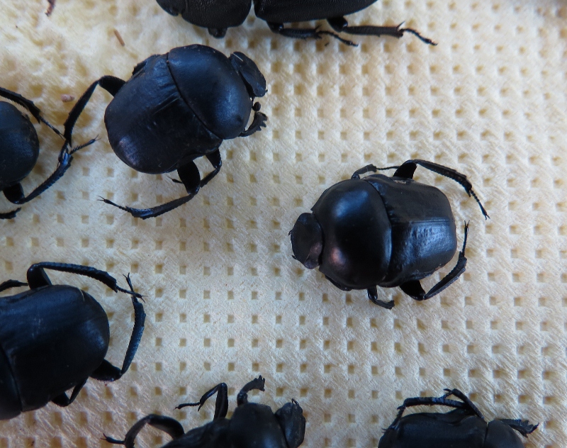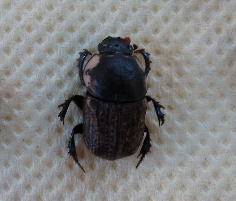 le prime sono di Giugno , per la massiccia e costante presenza di cavalli sul sentiero e le loro abbondanti ....... :mrgreen: mi sono divertito a .... :ses :ses stanando alcuni Histeridi molti Coprofagi , un sacco di Onthophaghus , Gymnopleurus , euoniticellus e due specie diverse di Onitis ( o Cheironitis .. ) uno in foto l'altra specie non fotografata ha elitre e protorace completamente neri senza alcuin segno piu' chiaro.