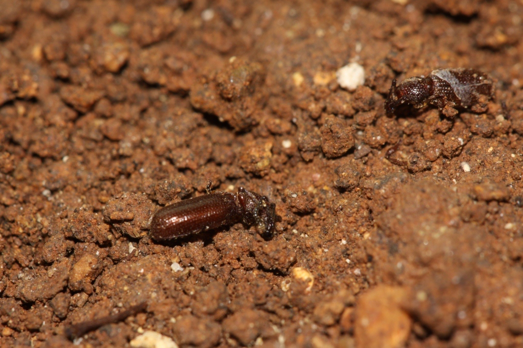 eccoci in grotta, precisamente nella Grotta dell'Orso, una delle poche (l'unica?) dell'isola. Con la collaborazione del collega di Leonardo che vedete nella foto, siamo entrati in questa piccola cavità alla ricerca di artropodi, ed in particolare dell'endemico Otiorhynchus (Lixorrhynchus) bartolozzi. Leonardo ha disposto alcune trappole, poi abbiamo esaminato tutti gli angoli della grotta in cerca di esemplari.