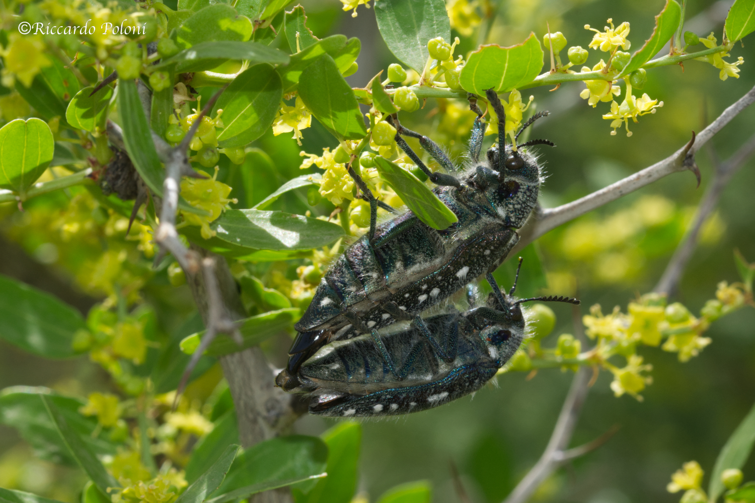 Faccio un mea culpa: con le vacanze, entomodena e la ripresa del lavoro ho lasciato il reportage. Ormai però mancano solo due giorni alla partenza e quindi siamo verso la fine. Oggi è una giornata di viaggio: da Asni, dove abbiamo dormito, dobbiamo raggiungere la foresta della Mamoora per recuperare le trappole che avevamo posizionato. Facciamo quindi un lungo viaggio, attraversando Marrakech, arrivando in autostrada a Casablanca e poi riprendendo la strada per Rabat e, infine, la pista sterrata nella foresta. Lungo la strada si vedono alcune scene piuttosto interessanti. Le mura di Marrakech La sicurezza stradale prima di tutto. Il bello è che poi fermano te perchè andavi ai 70 in uno stradone dritto dove, però, per qualche ragione, c'è il limite dei 60 km/h. Una cosa che non ho capito è perchè ci sono aree di servizio dove vengono esposti centianaia di metri, letteralmente, di piatti, ciotole e vasellamen vario. I locali immagino che non li comprino, e voglio vedere quale turista si porterebbe in aereo un'anfora o un piatto che pesa 2 chili  . Ritiriamo le trappole alla foresta della Mamoora con una certa delusione: delle specie che avevano trovato i miei compagni viaggio l'ultima volta c'è poco o nulla, forse per il periodo, ritardato di una settimana in un anno particolarmente caldo e secco. Riusciamo a trovare una sola Stictoleptura tangeriana, alcuni Cerambyx cerdo e una certa quantità di Potosia opaca. Facciamo poi una lampada nella stessa radura dove avevamo posizionato le trappole perchè, in pieno giorno, ho visto volare un paio di Anoxia. Troviamo diverse cose interessanti: una piccola serie di Anoxia, Onitis alexis, alcuni Cebrio, diversi piccoli Sericini. In più, trovo alcune fatte di vacca e riesco, con la torcia frontale, a recuperare dal viscoso elemento da loro tanto amato alcuni Onthophagus e Aphodius. L'indomani riprendiamo la strada per Ifrane dove recuperiamo le trappole posizionate a Ifrane e facciamo in tempo a cercare un po' nei dintorni, trovando una pullulazione di Meloidi (il video non riesco a metterlo!). Il giorno successivo, infine, percorriamo la strada che va da Azrou verso Khenifra, dove troviamo alcuni floricoli e, soprattutto ì, Julodis manipularis in quantità e pilosa, molto meno frequente. Tutti i puntolini neri sono grossi Meloidi, credo appartenenti ai Mylabrini. Le Julodis manipularisLe Julodis pilosa