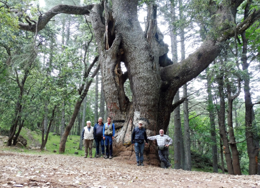 Eccoci giunti all'ultima parte del viaggio. Il pomeriggio del 10 giugno, dopo esserci divertiti a raccogliere Julodis sui giuggioli, ci siamo diretti verso Casablanca, attraversando una landa semidesertica con temperature proibitive (44-45 gradi). Arrivati a Casablanca, consumiamo una cena molto più occidentale e noiosa di quelle a cui eravamo abituati in un albergo molto più occidentale di quelli a cui eravamo abituati. Il mattino dopo, presto, partiamo da Casablanca e arriviamo a Bologna prima dell'ora di Pranzo, trovando ad accoglierci la dolce collina e la verde pianura emiliana, che ci riporta alle vite di tutti i giorni. Il viaggio è stato intenso e ne siamo rimasti tutti contenti. I Cerambycidae e gli Oedemeridae si sono fatti desiderare, anche se alcune specie interessanti sono saltate fuori, anche dalla legna. Pochi giorni fa è uscita, per esempio, una Bolivarita oculata a Lucio. Non so esattamente quanti chilometri abbiamo fatto ma sicuramenti tanti, forse troppi, e le tappe del viaggio numerosissime. Sicuramente devo tornare in Marocco, anche se forse non l'anno prossimo  . Vi lascio con la foto di rito, fatta ai piedi di un cedro secolare di dimensioni imponenti, sulla strada che sale a Ras Elma. Da sinistra Mauro, Luigi, io, Luciano e Lucio.