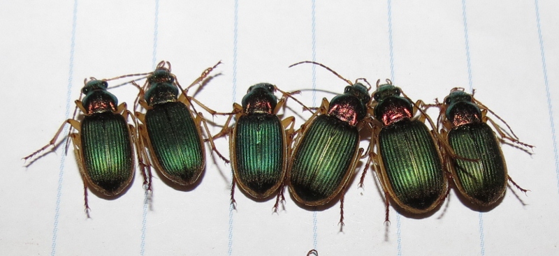 NB : ho notato che i Chlaenius in modo particolare quando sono raggruppati come in questo frangente , a differenza dei Carabus , una volta infastiditi emettono una sostanza odorosa di un aroma differente non e' cosi' disgustosa come quella dei Carabus , e' unico vi assicuro che quando infastidite un gruppetto di 20 o piu' Chlaenius o mettete le mani dentro a un mucchio di foglie che li nasconde, sentite questo odore che e' inconfondibile capite subito che sotto quelle foglie ci devono essere loro che stanno cercando , spruzzando il loro acido, di mandarvi via ........... e quando mai ...... ahahahha
