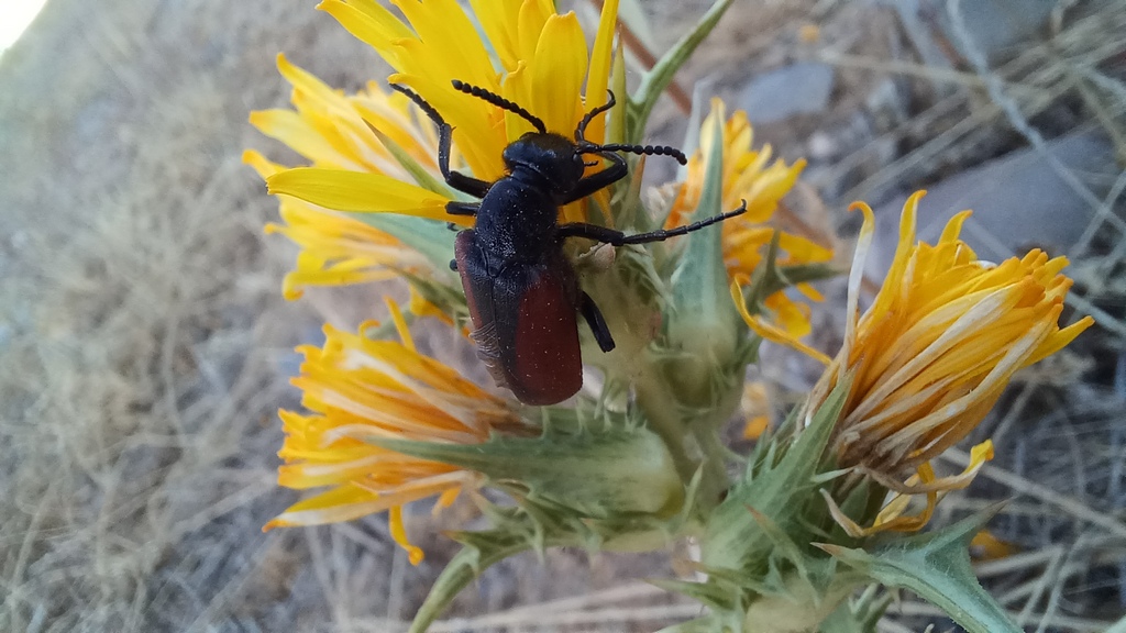 Arrivato a Fez e sbrigate le formalità di rito (ritiro bagagli, cambio valuta, acquisto SIM marocchina e ritiro auto a noleggio), ho fatto una capatina al Marjane di Fez per alcuni acquisti dopo di che mi sono avviato verso Ifrane proseguendo per Timahdite dove avevo intenzione di soggiornare per qualche giorno prima dell’arrivo di Roberto. Passata Ifrane, lungo la strada che porta al Tizi n’Tretten, ho fatto una prima sosta presso un campetto a bordo strada con molte piante erbacee per rendermi conto della situazione; c’erano alcuni tenebrionidi, cetoniini sui fiori di cardo, alcune Perotis unicolor, un bel mutillide ed ho trovato subito un Cebrio su uno stelo.