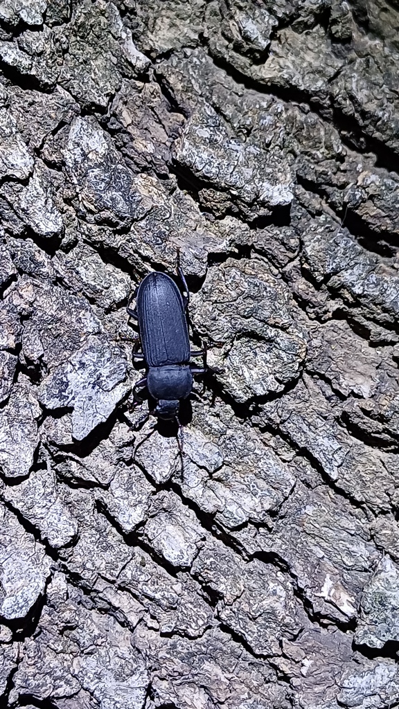 Passa ancora mezz'ora ma non giunge niente di rilevante. Decidiamo allora di spostarci in un pendio boscato poco distante dove rimontiamo tutto. Carlo gira in mezzo agli alberi con la frontale e individua alcuni Cerambyx sui tronchi e degli Alocerus . Alla lampada arrivano le Euserica, qualche Penichroa, Polyphylla, Cebrio, dei Dytiscus e degli Alocerus. Sui tronchi ci sono molti Tenebrio fuliginosus, Misolampus goudoti e almeno due specie di Prionychus. Verso le 24 siamo più che soddisfatti, sbaracchiamo e ce ne andiamo a dormire.