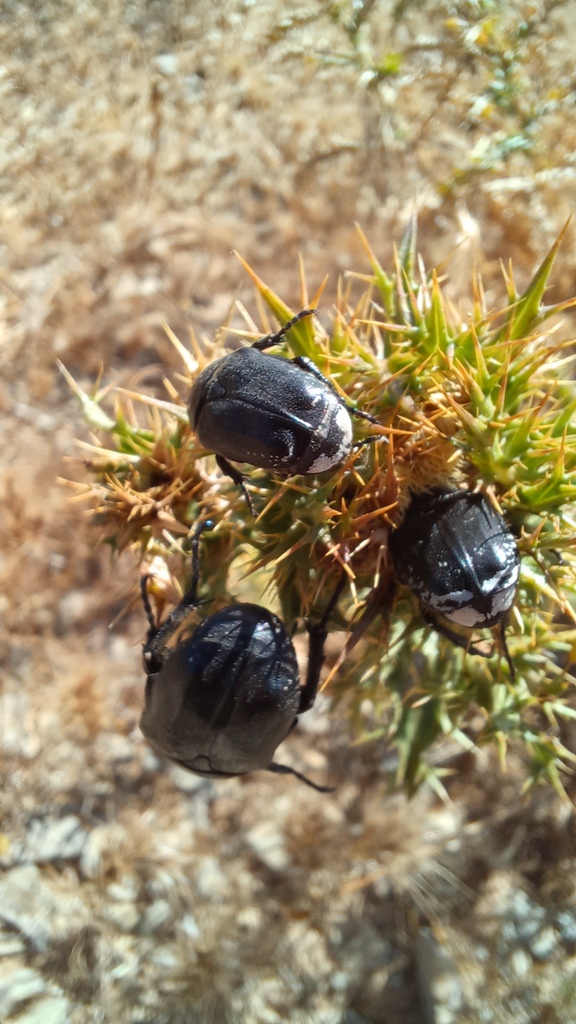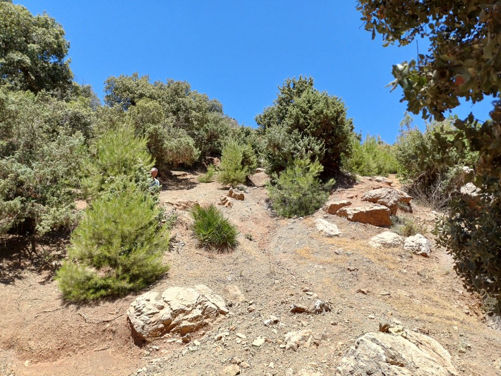 Sotto le pietre troviamo alcuni carabidi e tenebrionidi. Poi ci spostiamo in una zona più aperta, con una copertura boscosa rada e radure con numerose palme nane. Nei fiori abbondanti meloidi, cleridi, buprestidi, alcuni lepturini, cetonidi sui cardi. In alcune zone molto più esposte diversi Entomoderus sotto pietra. E' un ambiente magnifico.