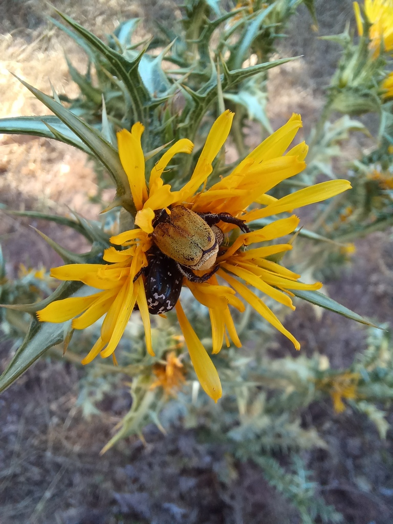 Concordiamo con la padrona il prezzo, scarichiamo tutto e poiché c'è ancora un po' di luce facciamo un giretto nei dintorni. Sui fiori di Scolymus troviamo diversi meloidi e un sacco di alleculidi, oltre che qualche Julodis. Immancabili i tenebrionidi.