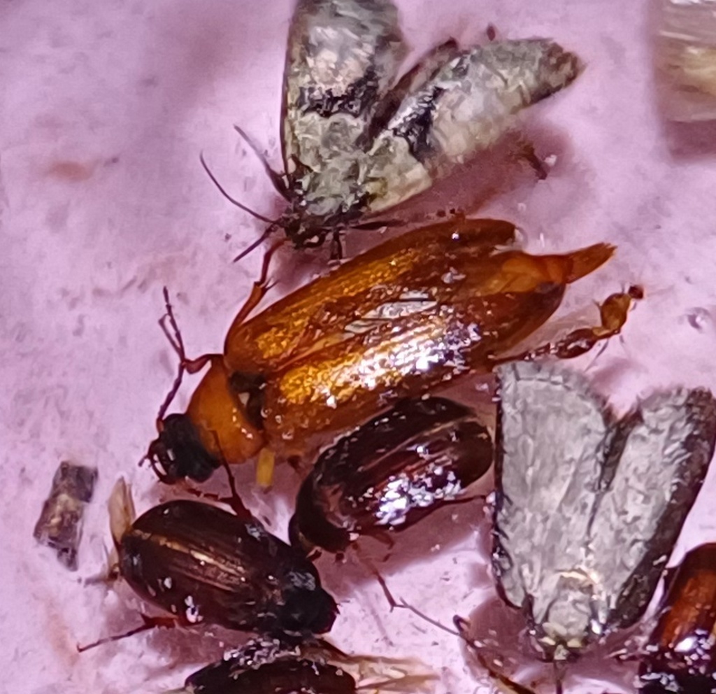Scende il buio, sembra una serata buona anche se ogni tanto c'è una folata di vento. Arriva la consueta minutaglia e le onnipresenti Euserica. Poi, dopo circa una mezz'oretta faccio due passi con la frontale e vedo qualcosa poco distante da telo, posato al suolo: è lui, eccolo finalmente: Cebrio reymondi :hp: .