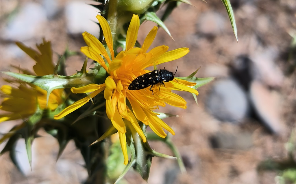 Ed ecco il secondo partecipante alla spedizione Io sono arrivato qualche giorno prima e sono ripartito qualche giorno dopo Roberto, per cui scriverò qualcosa sui giorni trascorsi da solo, mentre relativamente al periodo trascorso insieme mi limiterò a postare qualche foto dato che è stato descritto con dovizia da Roberto. Arrivato a Fez e sbrigate le formalità di rito (ritiro bagagli, cambio valuta, acquisto SIM marocchina e ritiro auto a noleggio), ho fatto una capatina al Marjane di Fez per alcuni acquisti dopo di che mi sono avviato verso Ifrane proseguendo per Timahdite dove avevo intenzione di soggiornare per qualche giorno prima dell’arrivo di Roberto. Passata Ifrane, lungo la strada che porta al Tizi n’Tretten, ho fatto una prima sosta presso un campetto a bordo strada con molte piante erbacee per rendermi conto della situazione; c’erano alcuni tenebrionidi, cetoniini sui fiori di cardo, alcune Perotis unicolor, un bel mutillide ed ho trovato subito un Cebrio su uno stelo. Proseguendo arrivo a Timahdite presso la struttura dove pernotterò e sistemo i bagagli in camera, accordandomi con i proprietari per la cena (sono l’unico ospite), dopo di che vado ad esplorare in auto i dintorni. Una particolarità: io sono sempre stato appassionato di elicotteri e di volo simulato e giorni prima di partire ho voluto provare a farmi un voletto sul Flight Simulator nelle zone del Marocco che ho visitato in passato; la rappresentazione delle zone è molto fedele per cui volando nei dintorni di Timahdite ho visto un bel lago che transitando sulla strada principale non si vede; volevo quindi andare sul posto a vedere la zona. Arrivato sul posto ho trovato un laghetto non molto grande (probabilmente per la mancanza di precipitazioni) ma nulla di interessante entomologicamente parlando (era comunque tardi). |