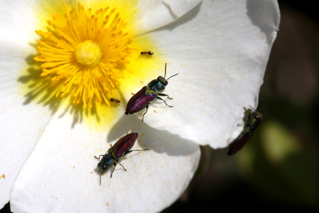 e, sulla spiaggia, alcuni esemplari di una numerosa popolazione di velocissime Calomera littoralis nemoralis (Olivier, 1790)